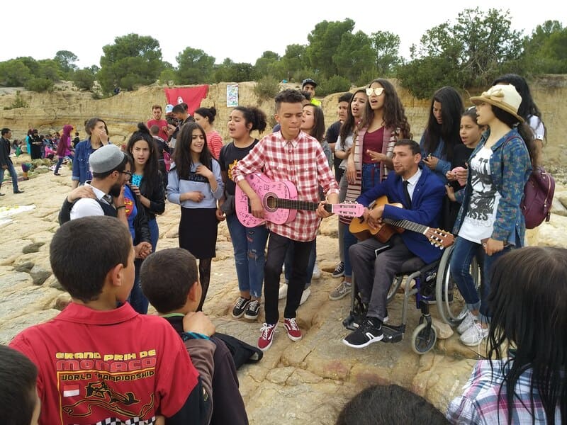 Nuestro grupo objetivo eran hombres y mujeres jóvenes de entre 14 y 30 años. De cualquier origen y colectivo. Se seleccionaron diferentes lugares para la ejecución de las actividades, en el eje entre Kasserine y Le-Kef, al oeste del país, todos rurales y cercanos a los beneficiarios que queríamos impactar. Y durante los meses de octubre de 2017 a mayo de 2018, todos los fines de semana se llevaron a cabo una serie de actividades culturales en el campo, como pintura al aire libre, danza, artesanía, peluquería, estrategia, etc. Estas actividades se seleccionaron en función de los intereses de los propios jóvenes y de las posibilidades que se ofrecieron a los organizadores para transmitir los valores y habilidades que el proyecto tenía entre sus objetivos.