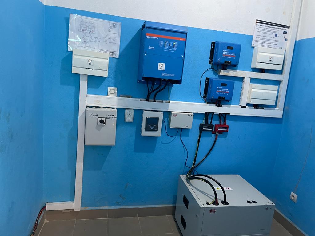La mayor parte de los dispositivos médicos y material hospitalario se mandaron desde España en un contenedor. Los servicios están asegurados gracias a la instalación de un sistema de paneles solares con baterías y a la construcción de un pozo con bomba eléctrica que surte de agua al centro.