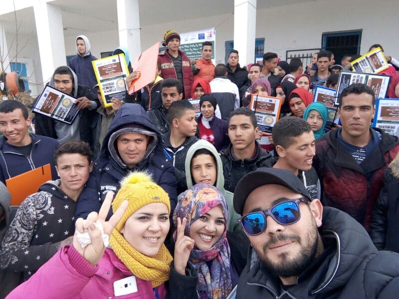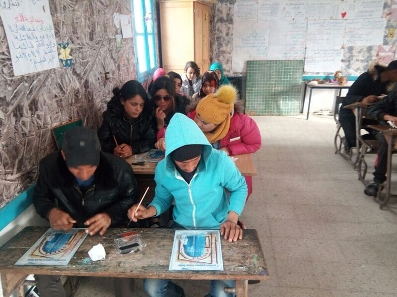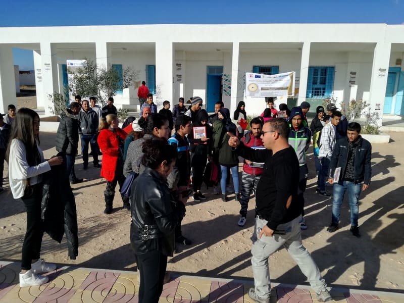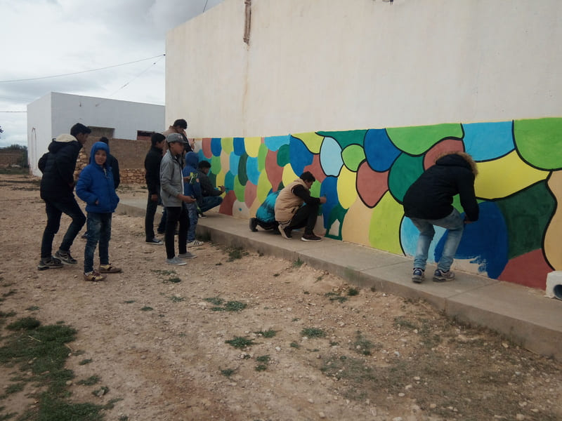 Nuestro grupo objetivo eran hombres y mujeres jóvenes de entre 14 y 30 años. De cualquier origen y colectivo. Se seleccionaron diferentes lugares para la ejecución de las actividades, en el eje entre Kasserine y Le-Kef, al oeste del país, todos rurales y cercanos a los beneficiarios que queríamos impactar. Y durante los meses de octubre de 2017 a mayo de 2018, todos los fines de semana se llevaron a cabo una serie de actividades culturales en el campo, como pintura al aire libre, danza, artesanía, peluquería, estrategia, etc. Estas actividades se seleccionaron en función de los intereses de los propios jóvenes y de las posibilidades que se ofrecieron a los organizadores para transmitir los valores y habilidades que el proyecto tenía entre sus objetivos.